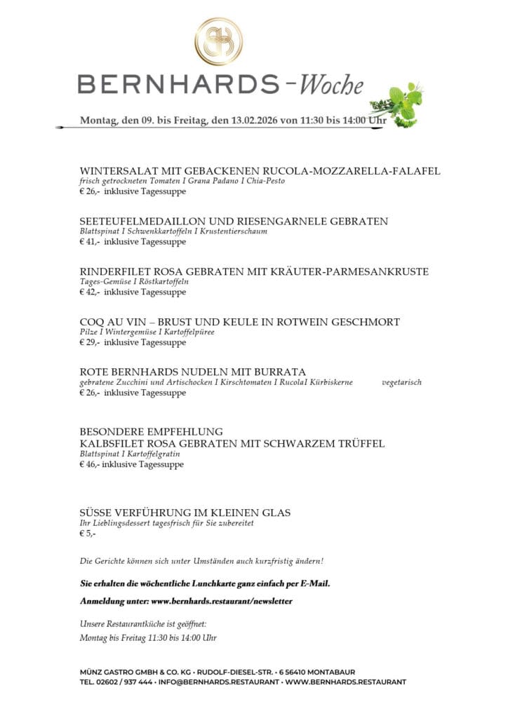 Melden Sie sich für den BERNHARDS-Newsletter an und bleiben Sie up to date! Erhalten Sie News, Veranstaltungen und Lunchempfehlungen direkt in Ihr Postfach.